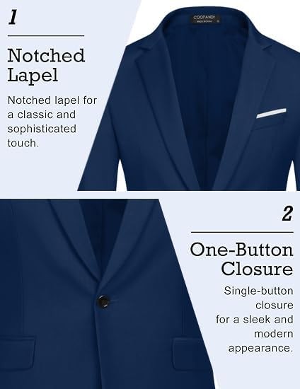 【Occasions】This stylish jackt is essential in mens wardrobe and greats for all season; Suitable for casual, business casual, club, office, meeting , dinner, party, dates, wedding, graduation party, prom, presentation, banquet, show, dancing, festival event.