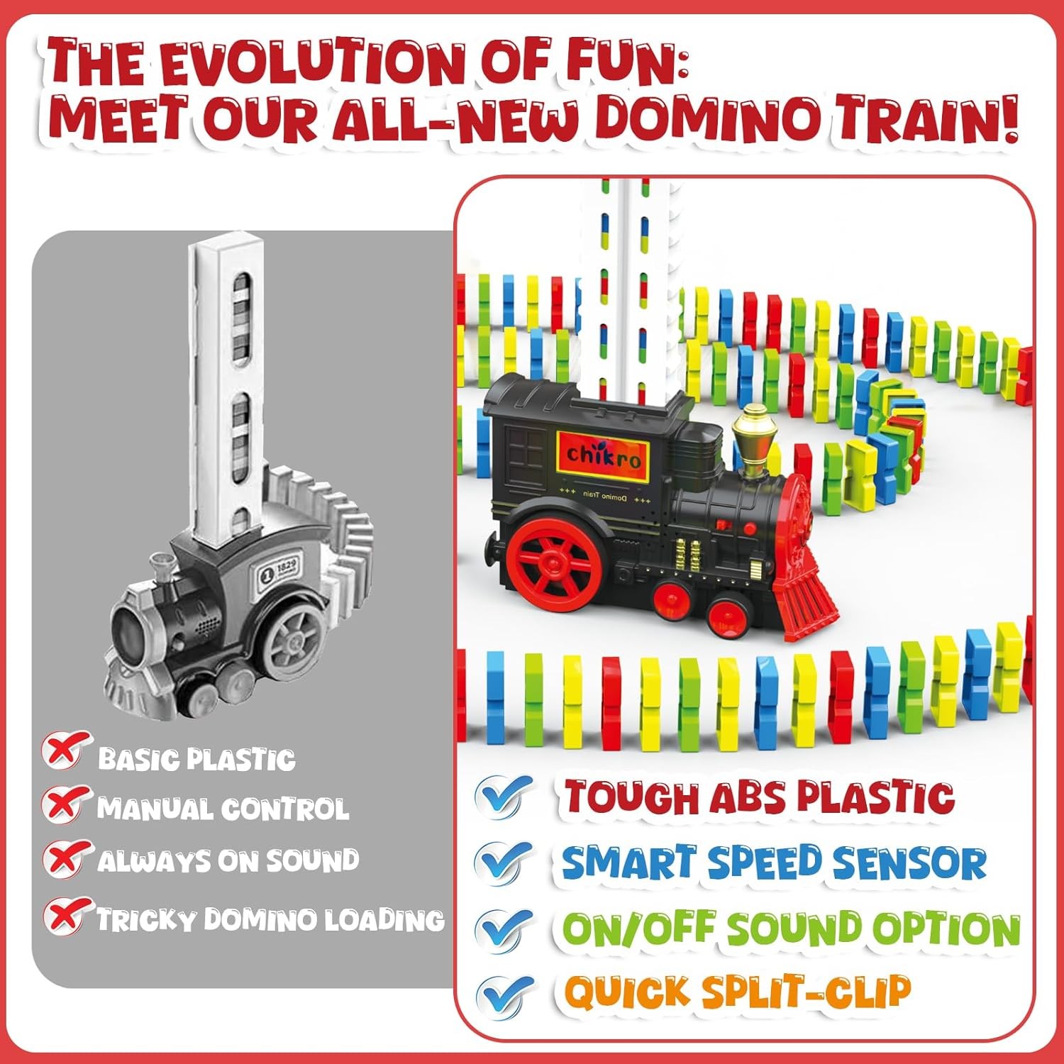 • ​​AUTOMATIC DOMINO PLACEMENT TRAIN​​: Launch a thrilling chain reaction with this ​​automatic domino placement train​​! Designed for ​​kids ages 3-4​​ and up, the ​​train​​ magically releases ​​dominoes​​ to create dazzling patterns. Perfect for ​​birthday gifts​​, holiday surprises (like ​​Christmas​​), or rainy-day ​​games​​, it sparks creativity while teaching ​​STEM building concepts​​.