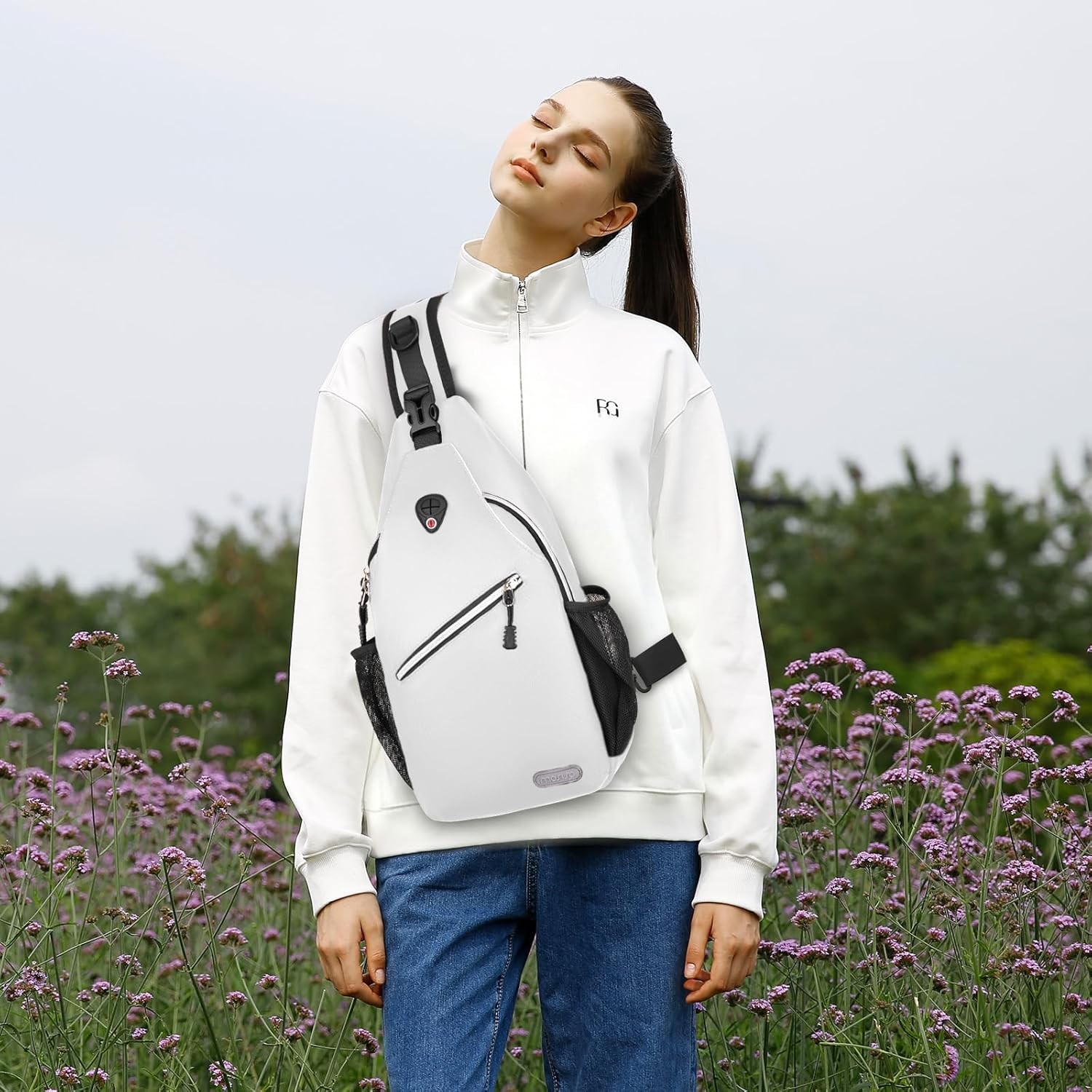 This sling bag is suitable for women men, suitable for outdoor sports (hiking, cycling, biking, walking, running, camping, climbing), office and business.