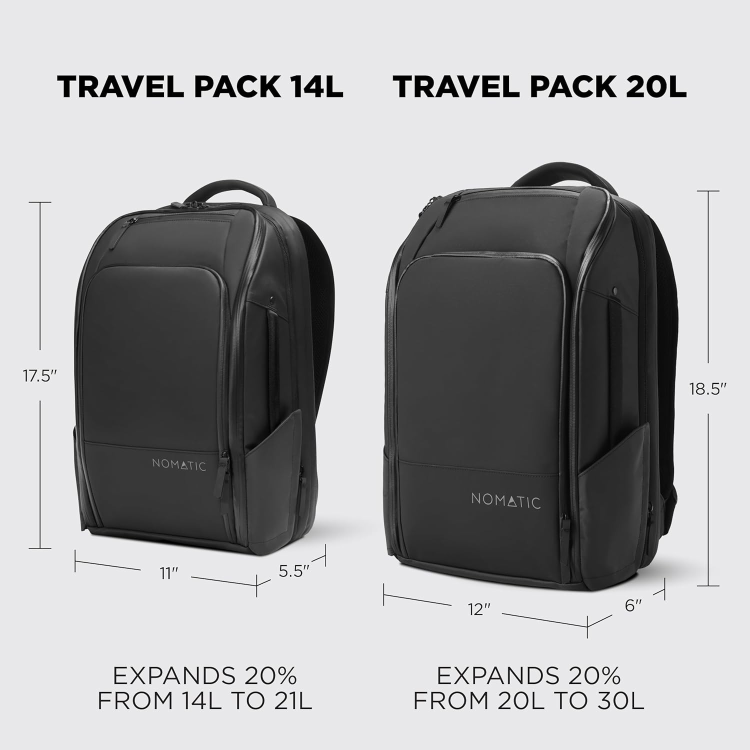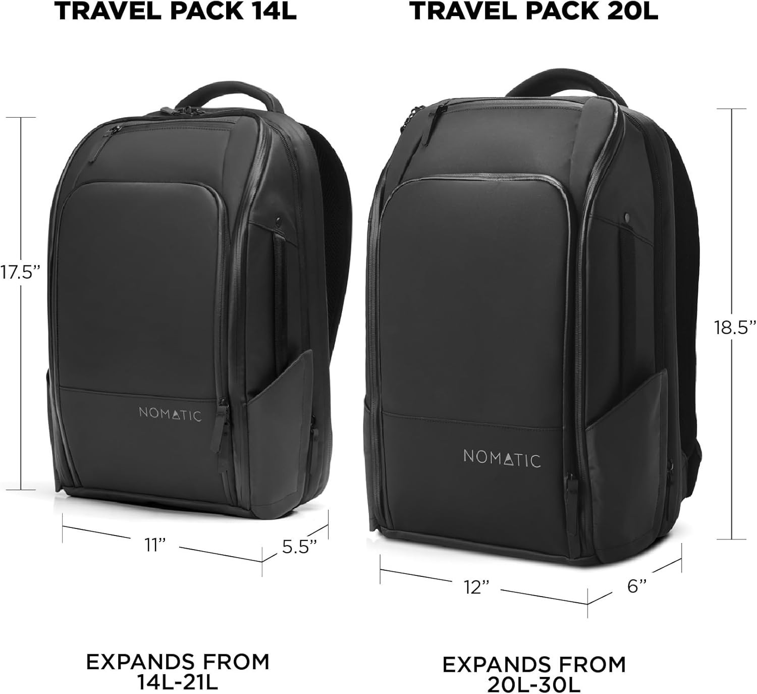 NOMATIC 20L Travel Pack - Mens Travel Backpack - Expandable to 30L - Water Resistant Daypack - TSA-Ready - Lightweight Business Traveling Backpack for Men - 16" Laptop Compartment
