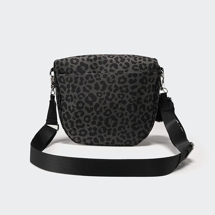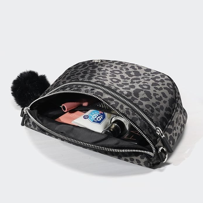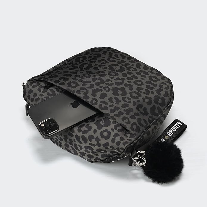 Pander Crossbody Bum Bag for Women, Everyday Nylon Shoulder Bag with Pompom Keychain Wristlet Bag Charm, Adjustable Strap