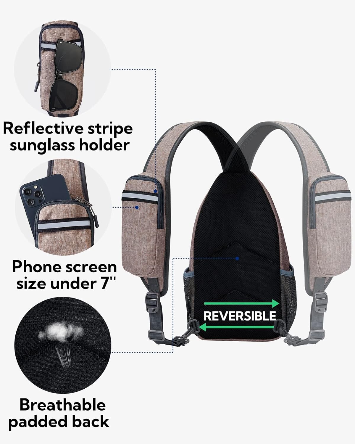 Keep Everything in Order: Size: 7 x 3.5 x 15 inches /18 x 9 x 38 cm. The front zipper bag and buckle bag allow you to store iPad mini, iPhone 7 Plus, power band, etc., with several separate small compartments inside, it can effectively keep your small items like makeup, tissue, keys and so on. The side mesh pocket is 6 inches height, it can hold 2.4 inch(diameter) bottle