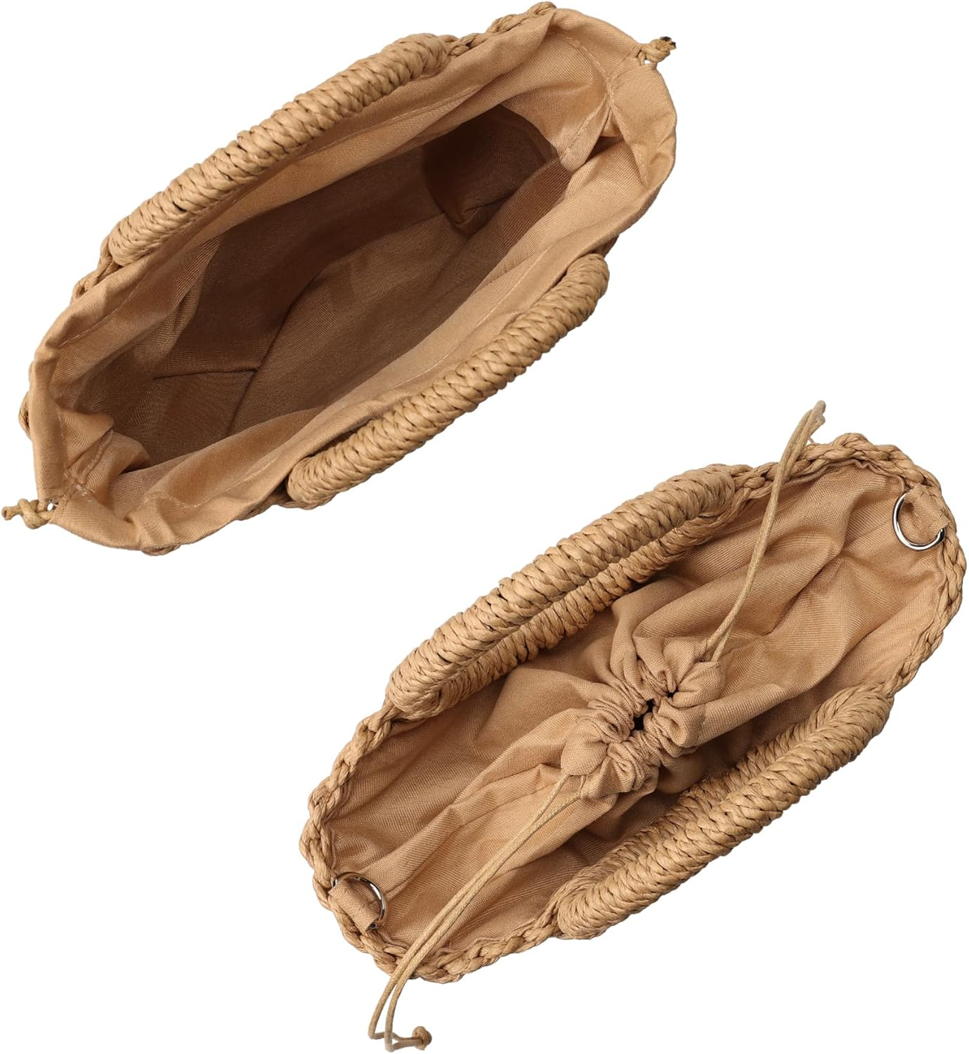 Unique Chic Design: Features a half moon structured shape, circle handles and a drawstring closure, this woven straw handbag is a perfect accessory that adds a touch of styles to your spring and summer look
